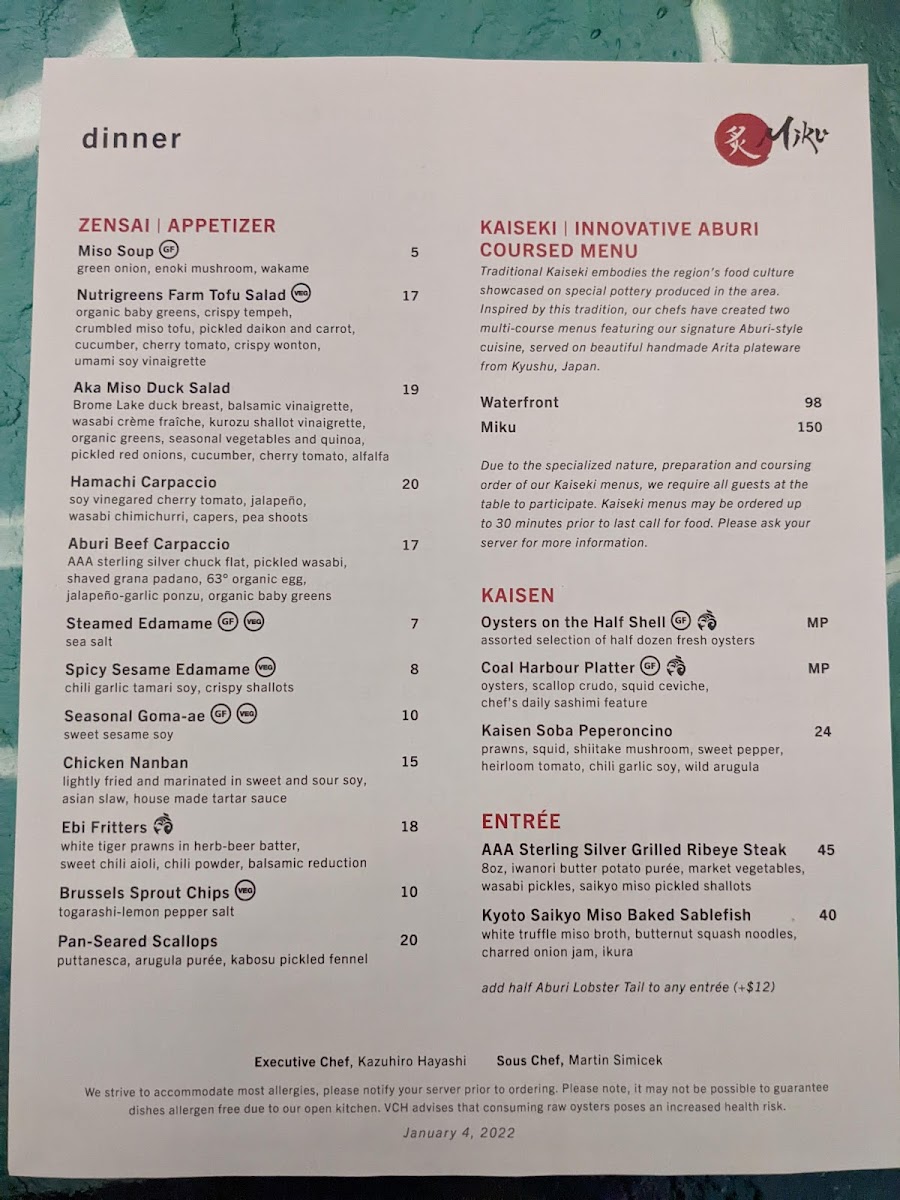 Welcome to Miku Vancouver, a culinary gem located at 200 Granville St, overlooking the stunning waterfront of Vancouver. Renowned for its exquisite Japanese cuisine, Miku excels in Aburi sushi, a uniquely flame-seared sushi that has garnered rave reviews from guests. The menu showcases a harmonious blend of fresh, seasonal ingredients, artfully presented in multiple courses that elevate dining to an unforgettable experience.